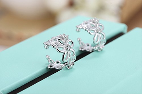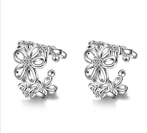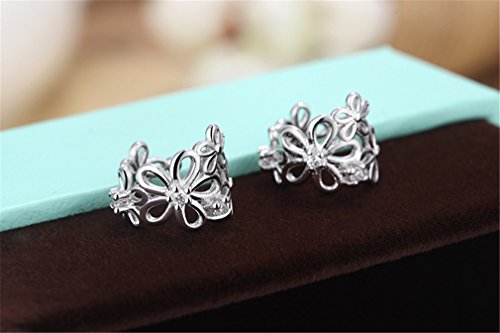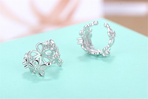 Boowhol Orecchini a clip senza fori, da donna, ragazza, con fiore cavo, in argento Sterling