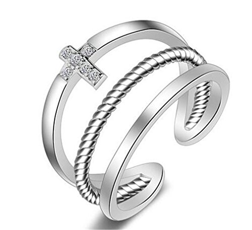 Boowohl - Anello da donna in argento Sterling 925, con cristalli, con geometria semplice, doppio anello, regolabile, anello di fidanzamento