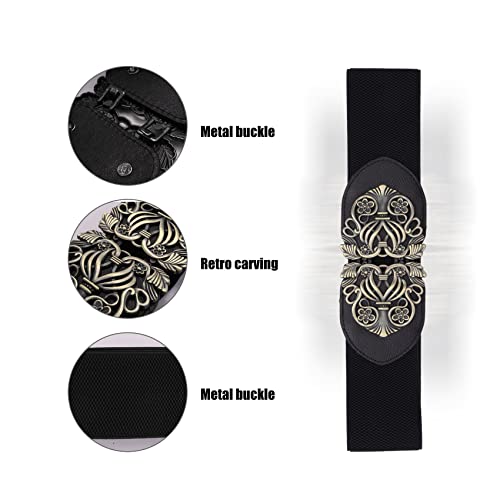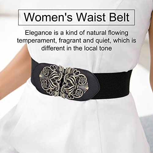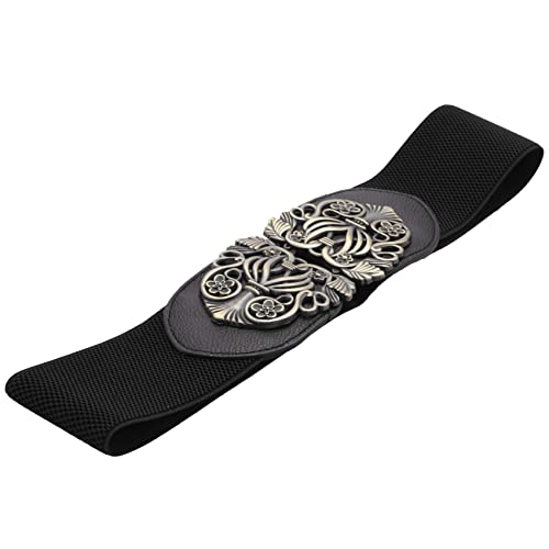 Bopfimer Cintura a Vita Alta con Cinturino Elastico Elasticizzato a Fiore Retro'(Nero)