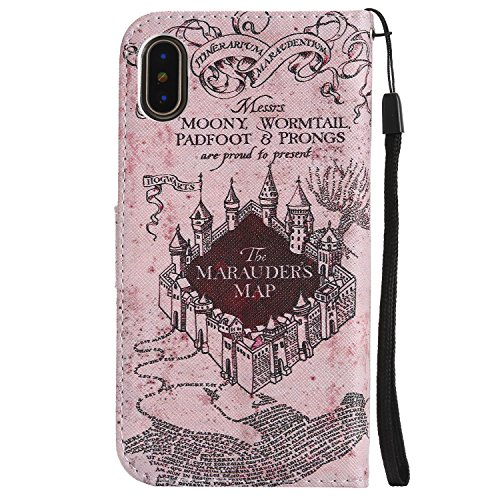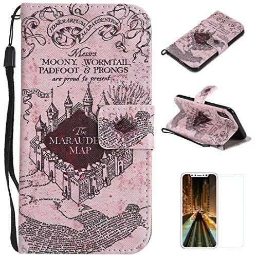 BoRan Custodia iPhone XS, Cover iPhone X Libro Protezione in Pelle con Interno TPU Antiurto [Supporto Stand + Slots Schede] Folio Flip Wallet Case Compatible for iPhone X/XS - Castello Magico