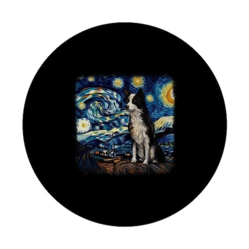 Van gogh Border Collie nella notte stellata PopSockets PopGrip Intercambiabile
