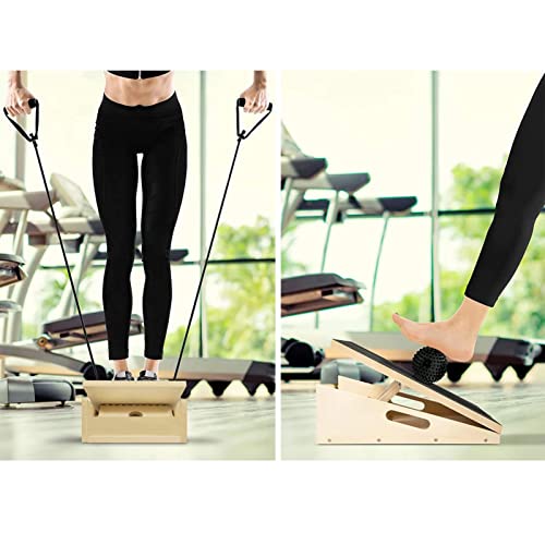Bordo inclinato professionale in legno, bordo inclinato regolabile e barella per polpaccio, bordo elasticizzato con sfera da massaggio a punta e tubo di resistenza elastica per esercizi di fascite