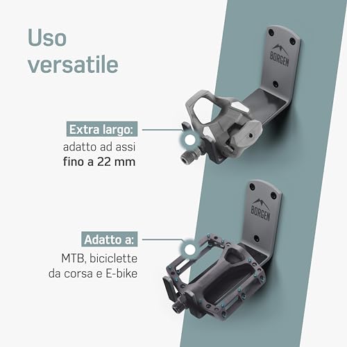 Borgen Gancio da parete per biciclette, gancio pedale per biciclette elettriche, MTB, bici da corsa: supporto da parete per ruota e protezione muro