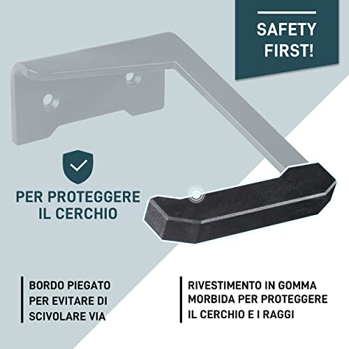 PROTEZIONE AGGIUNTIVA - Lo strato di gomma sulla sospensione della bici protegge il cerchio da graffi. Grazie ai due cuscinetti protettivi in dotazione da incollare, con la sospensione della bici è possibile evitare i segni delle ruote sulla parete.