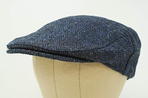 Borges & Scott Coppola Nevis - 100% Lana Tessuta a Mano - Tweed Harris - Resistente all'Acqua - Blu Scuro Herringbone 58cm