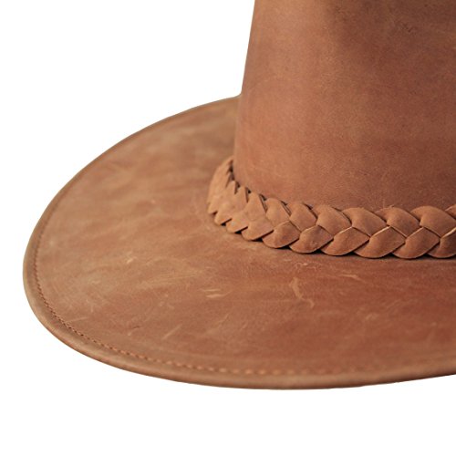 Borges & Scott B&S Premium Fedora in Cuoio- Cappello con Tesa Ampia- 100% Cuoio di qualità Alta- Impermeabile- Marrone Chiaro. 56cm