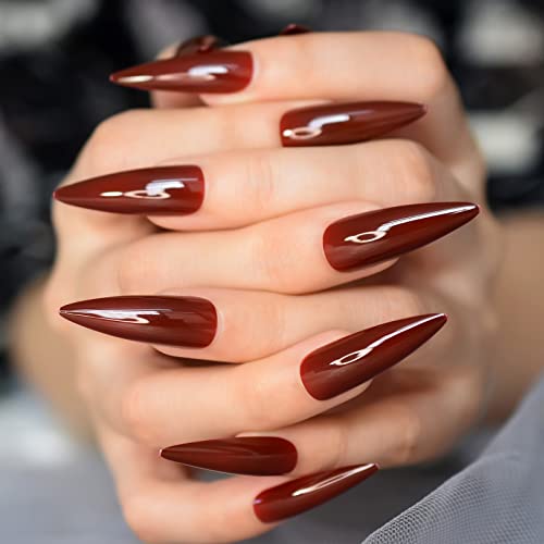 Borgogna Rosso Lungo Stiletto Unghie Finte Colore Puro Acrilico Lucido Copertura Completa Riutilizzabile Facile Applicando 24 pz/kit