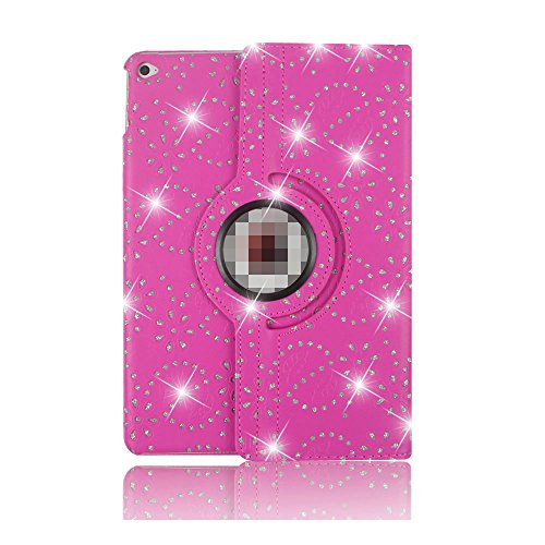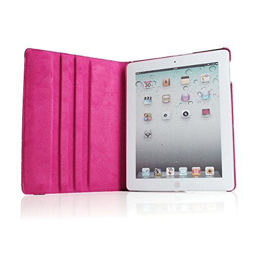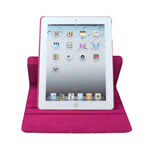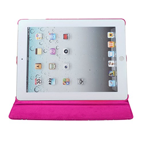 IPad Air 2 case, Boriyuan New 360 rotating Smart custodia in pelle fiore modello di custodia in pelle PU, con funzione di supporto per iPad Air 2 24,6 cm con pellicola protettiva per lo schermo + stylus rosa caldo 1-Hot Pink 25 cm