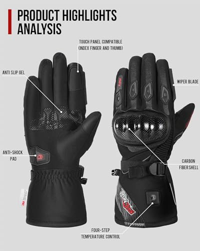 BORLENI Guanti Riscaldati Moto Invernali Uomo Guanti Ricaricabili Ricaricabile Impermeabili Touchscreen per gli sport all'aria aperta Sci Snowboard Ciclismo Alpinismo Escursionismo Nero XL