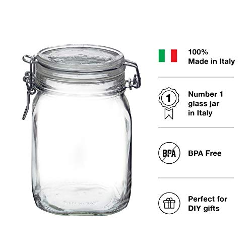 Bormioli Rocco, barattoli in vetro trasparente, coperchio ermetico con chiusura a cerniera, con guarnizione a prova di perdite, contenitore per alimenti da cucina a bocca larga, per conservare marmellate, spezie, caffè, zucchero ed erbe aromatiche.