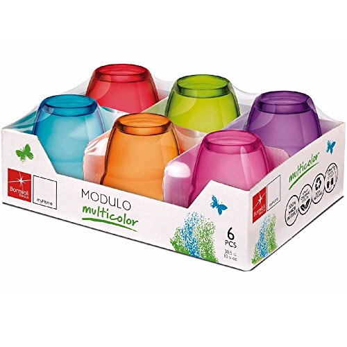 BORMIOLI Set di 6 bicchieri da 30,5 cl Modulo impilabile colori assortiti Collezione: Modulo Materiale: Vetro Colore: Multicolore Altezza: 9,5 cm Diametro: 8,5 cm Capacità: 30,5 cl