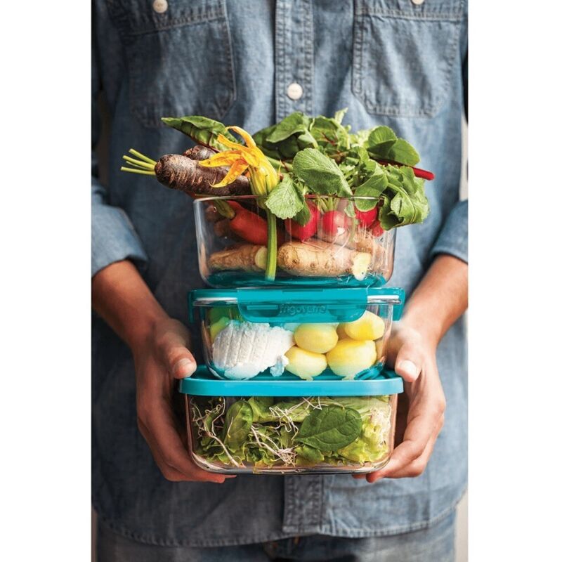 Corpo in vetro temprato Coperchio trasparente Ermetico Resistente da -20°/+70° Impilabile Lavabile in lavastoviglie Utilizzabile in microonde e forno senza coperchio