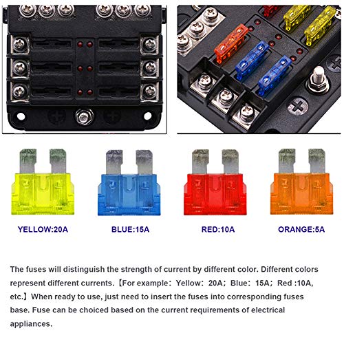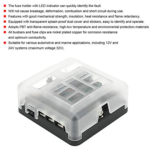 BOROCO Scatola Portafusibili a 6 Vie Car Boat Power Distribution Blade Portafusibili Pannello di Blocco 12V‑32V