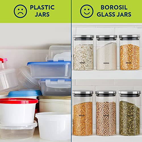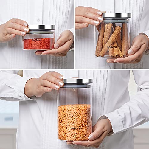 Borosil Classic Glass Jar for Kitchen Storage, Set of 3, (300ml + 600ml + 900ml)