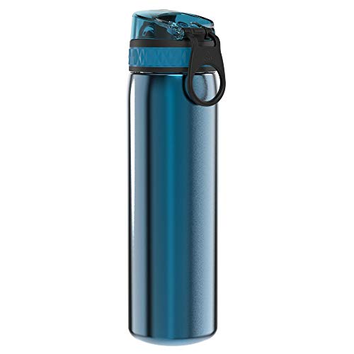 Ion8 Borraccia Acciaio Inox, 600ml, a Prova di Perdite, Facile da Aprire, Serratura Sicura, Lavabile in Lavastoviglie, Adatta a Portabicchieri, Maniglia per il Trasporto, Durevole, Metallo Blu
