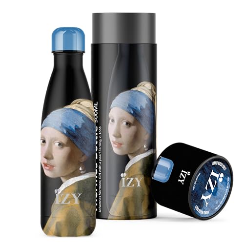 IZY Borraccia x Art - Borraccia in acciaio inossidabile - Borraccia termica 500 ml - Borraccia termica a doppia parete per gli spostamenti - Senza BPA (La ragazza con la perla)