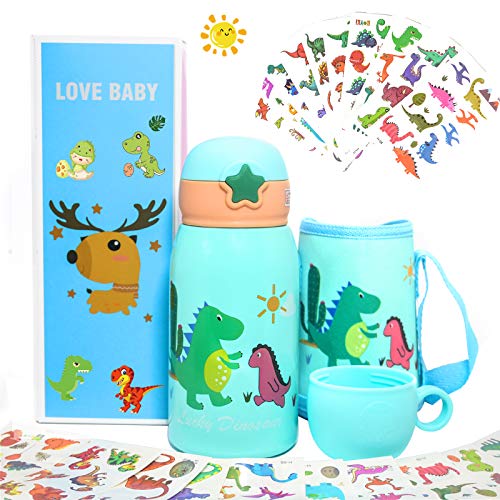 【Bottiglia Termica Dinosauro Fai-da-te per Ragazzo】: Viene fornito con una bottiglia d'acqua, tracolla per acqua potabile, 10 pezzi di tatuaggi temporanei dinosauro. I tuoi figli adoreranno questa bottiglia.