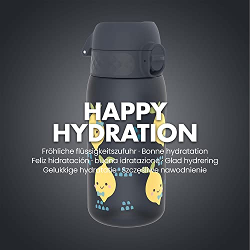 Ion8 Borraccia per Bambini, 350 ml, a Prova di Perdite, Facile da Aprire, Serratura Sicura, Lavabile in Lavastoviglie, Senza BPA, Maniglia per il Trasporto, Facile Pulizia, Design Limoni