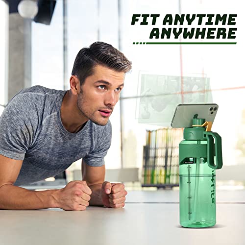 【Design della maniglia portatile e del supporto per telefono cellulare】 La maniglia ergonomica facilita la presa borraccia motivazionale anche quando è piena d'acqua, ha la funzione di supporto per telefono cellulare sul coperchio, può godere di 5 g di vita sempre e ovunque, un borraccia acqua portatile ideale per il lavoro, fitness, corsa e viaggi.