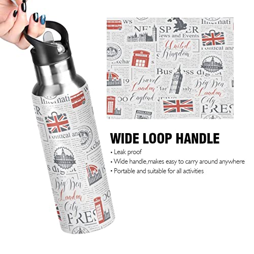 Borraccia isolata con bandiera di Londra del Regno Unito con coperchio di paglia, bottiglie sottovuoto in acciaio inox con manico per bevande calde e fredde 567 g senza BPA