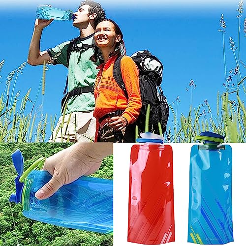 Borraccia Pieghevole Set di 2,Bottiglia Pieghevole,Flessibile Riutilizzabile Borraccia,700ml Riutilizzabile Borraccia Flessibile,Riutilizzabile Borraccia Flessibile per Escursionismo Blu e Rosso