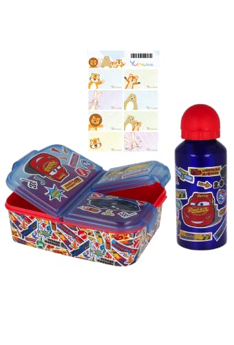 Cars - Borraccia sportiva per bambini, con contenitore per il pranzo, senza BPA, adesivo