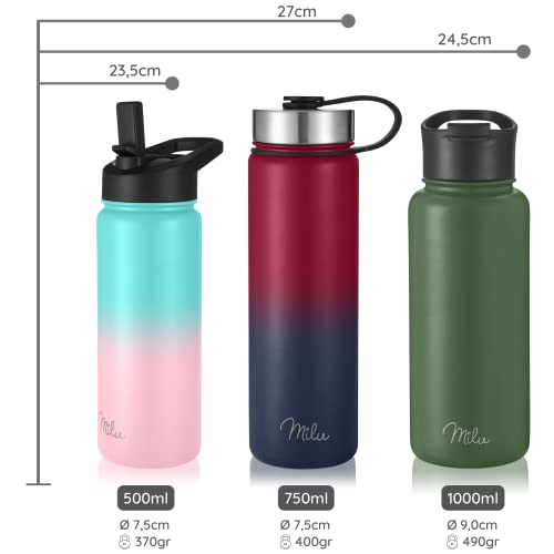 ✔ Mantiene caldo e freddo - Grazie all'isolamento sottovuoto a doppia parete con strato extra di rame, le vostre bevande rimangono calde / fredde nella bottiglia thermo Milu fino a 12h / 24h. Idealmente adatto come una bottiglia sportiva & bottiglia d'acqua per bevande fredde o bottiglia thermo per caffè caldo / tè.