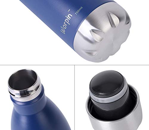Borraccia Termica, Bottiglia Termica Senza Bottiglia Acqua in Acciaio Inox, Senza BPA Vuoto Isolato Borraccia Termica in Metallo Bottiglia Termos Acqua 500ml 750ml, Riutilizzabile (750ml, Blu Navy)