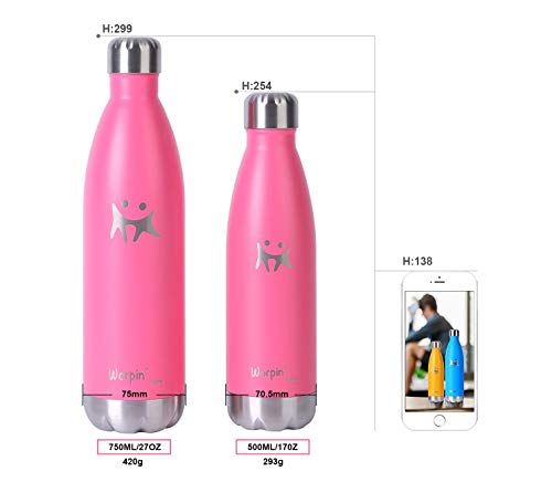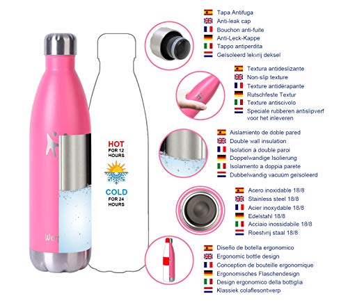 Borraccia Termica, Bottiglia Termica Senza Bottiglia Acqua in Acciaio Inox, Senza BPA Vuoto Isolato Borraccia Termica in Metallo Bottiglia Termos Acqua 500ml 750ml, Riutilizzabile (750ml, Rosa)