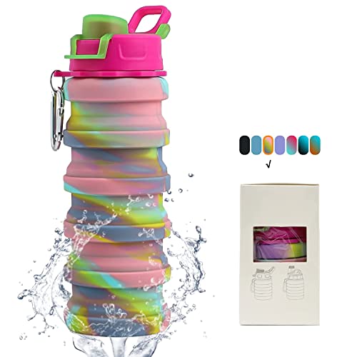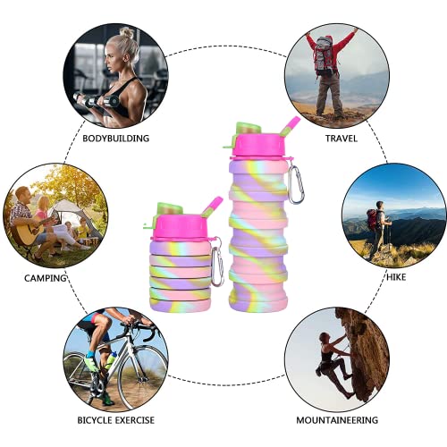 Rain Biao Borraccia da Viaggio Pieghevole 500ML, Borraccia Portatile con Moschettone Riutilizzabile Senza BPA In Silicone Pieghevole per Palestra Campeggio Escursionismo Ciclismo Campeggio