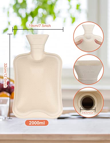 Borsa Acqua Calda con Copertura Morbida, 2 Litri di Gomma Naturale Senza BPA, Resistente Borsa Dell'acqua Calda per Terapia Fredda e Calda, Cuscinetto Riscaldante per Alleviare il Dolore (Scuro)