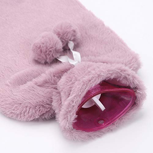 XIMU Borsa dell' Acqua Calda, 2L Gomma Caldo Bottiglia d'Acqua Mini con Morbida Fodera in Peluche Rimovibile e Lavabile Bottiglia di Acqua Calda in Gomma Hot Water Bottle per Mano Piede Caldo(Rosa)