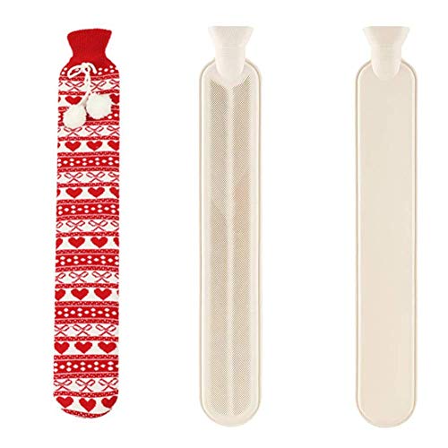 Borsa per acqua calda lunga 2 l, con copertura a maglia, per alleviare il dolore, dolori muscolari, crampi mestruali, regalo di Natale