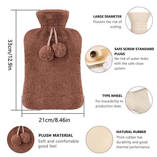 Borsa Acqua Calda, 2L Borsa Acqua Calda Peluche Bottiglia di Acqua Calda in Gomma Hot Water Bottle per Mano Piede Caldo,ideale per alleviare il dolore -Ottimo Regalo per Madre e Padre (caffè)