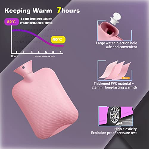 Calore a lunga durata: materiale in PVC spesso di alta qualità + rivestimento in tessuto ispessito, trattiene efficacemente il calore, la grande capacità di 2 l garantiscono un calore a lungo termine. Si prega di versare circa 80 °C di acqua calda e riempire a due terzi.