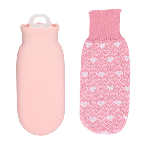 Borsa dell'acqua calda Borsa dell'acqua calda in silicone con coperchio lavorato a maglia, piccola bottiglia d'acqua riscaldata Scaldapiedi portatile bambini Donne Sollievo dolore 550 ml(rosa)