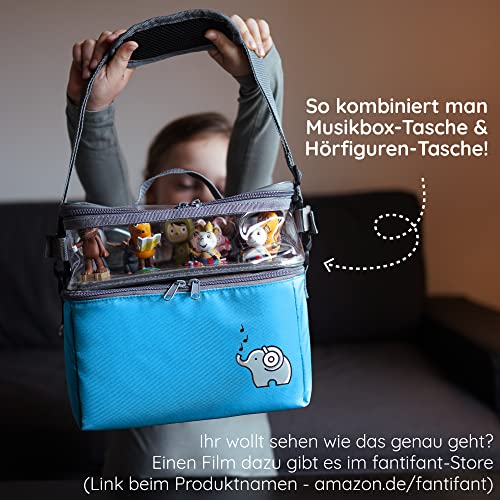 Borsa per cubi acustici (es.Toniebox e Tigerbox Touch) | blu squalo | scomparti interni regolabili | tasca in rete per accessori (es.10 figure dell'udito (Tonies) o schede SD)
