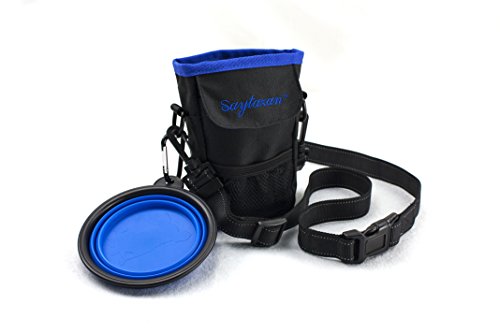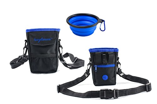 Borsa per addestramento cani, impermeabile, con cinghia regolabile, strisce riflettenti, come dispenser per ricompense, ciotola in silicone pieghevole, e sacchetti in plastica per le feci