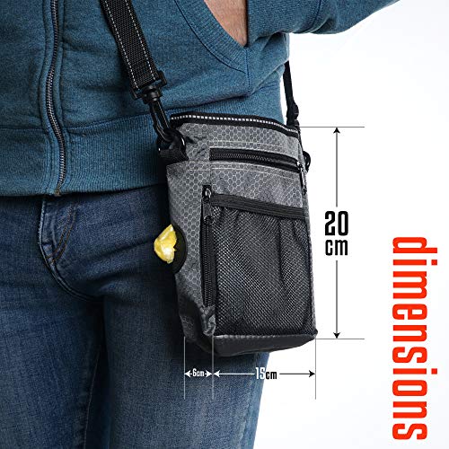 Borsa da Addestramento Cane Impermeabile con Cintura Regolabile e Tracolla-Sacchetto di Cibo per Cani, Borsa Trattamento con Ciotole da Viaggio, Dispenser Sacchetti per Bisogni,Clicker & Tennis Ball!