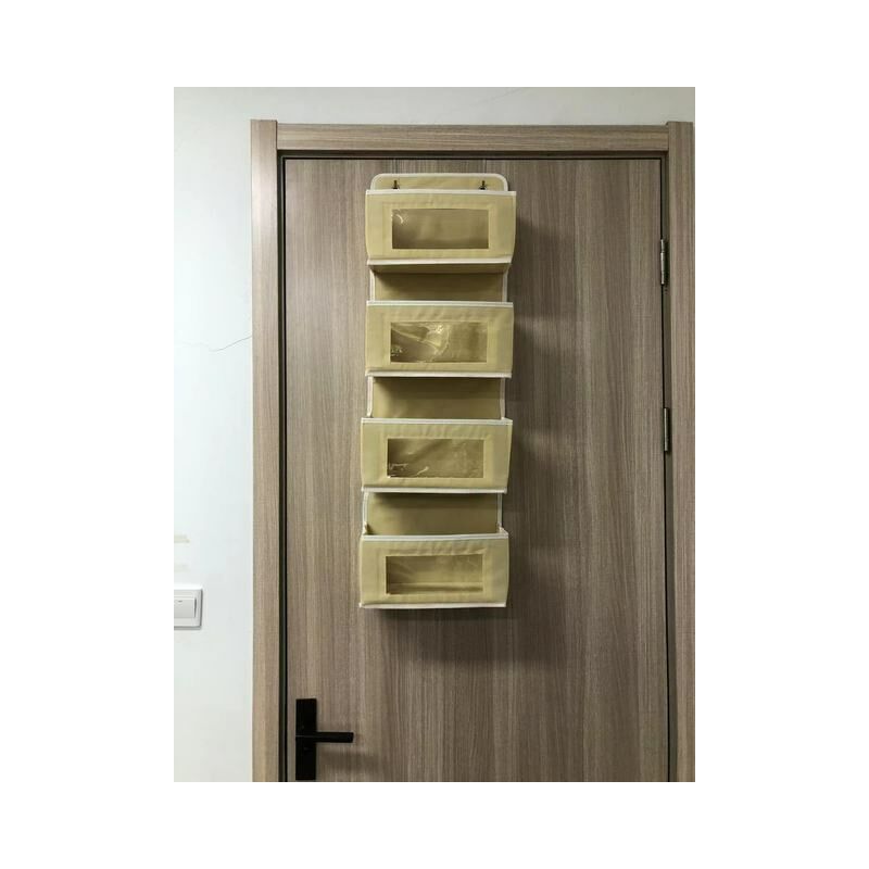 Product description Hanging Organizer Bag Non-woven Fabric Door Wall Hanging Storage Bag in Living Room Features: 1.[Four colors for Selection]: Bedroom Kitchen for Toy Cosmetic KitchenwareThe storage hanging bag has Four colors for you to choose fromcolor:black,grey,beige,coffee colorthe 4-layer storage bag measures 33x11x99CM/13x4x39in This door storage pouch is designed to fit standard 1.98in thick household doors with a required clearance above the door of more than 0.06in (0.15cm). 2.[Save Storage Space]: The over the door hanging storage bag is mounting on the wall or installing on the door to add extra storage space to your limited living space. You can also install the hook on the wall with a punching-free adhesive tape, which is easy to install and use. 3.[Strong and Durable]: These storage bags are made of non-woven fabric and plastic, waterproof and tear-resistant for long-term use. Each storage bag comes with 2 stainless steel hooks. Sturdy cardboard supports the bottom