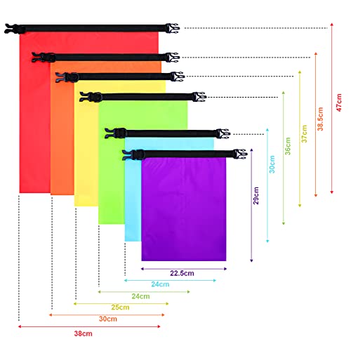 Set di Borsa Asciutta Impermeabile Sacche Stagne Impermeabili Leggeri da 15 L+ 8 L +5 L+4 L+3 L+ 2 L e 2 Tracolle Lunghe Regolabili per Kayak, Rafting, Canottaggio (Colori Misti, 6)
