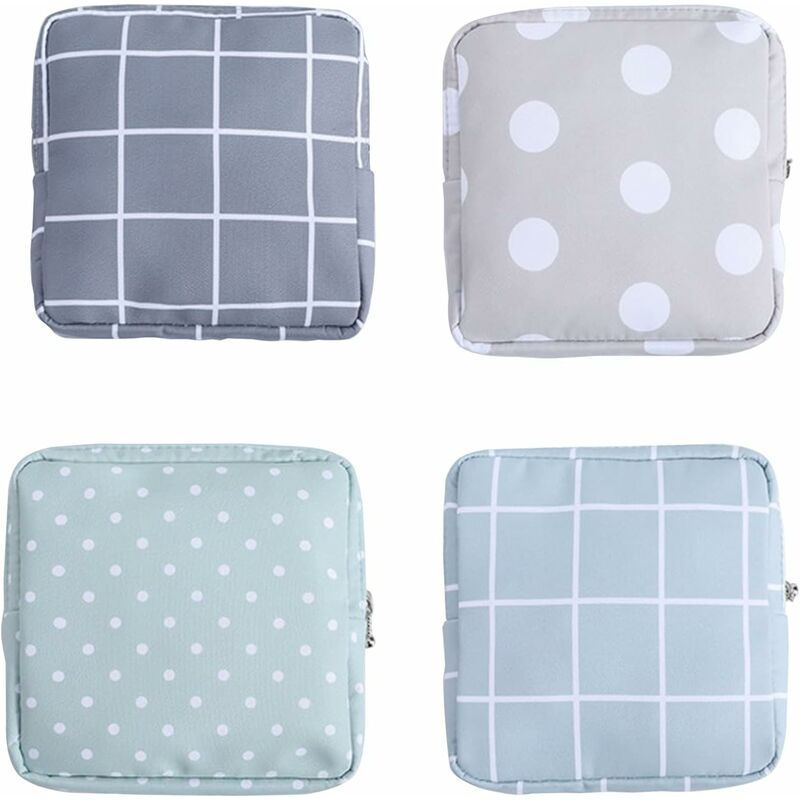 Design -- La mini custodia ha un design con stampa quadrata, molto fresca e carina, molto piccola e facile da trasportare. Può contenere circa 7 assorbenti igienici, sufficienti per un giorno. Quantità -- La confezione include 4 buste di assorbenti in totale. I loro stili sono punti grigi, punti verdi, griglie grigie e griglie blu. 1 pezzo di ogni stile. Dimensioni: la mini custodia è quadrata, con una lunghezza di 13 cm e uno spessore di 3 cm. Materiale: la custodia per assorbenti è realizzata in tessuto di cotone, speciale al tatto e molto facile da pulire. Applicazione: la mini custodia può contenere non solo assorbenti igienici, ma anche piccoli oggetti come monete, carte di credito, collane, cuffie, orecchini, cosmetici, ecc. [Nota utile] - Si prega di consentire una deviazione di misurazione di 1-3 cm dovuta alla misurazione manuale. - Il colore effettivo è leggermente diverso dalle immagini sopra a causa dei diversi display.