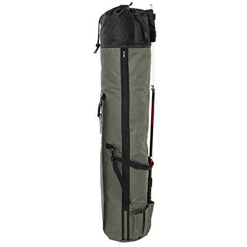 Borsa per canne da Pesca, Borsa da Pesca Portatile Multifunzionale per Mulinello da Pesca Contiene 5 Pali e Attrezzatura, Custodia per Canna da Pesca in Tessuto Oxford per Pesca all'aperto(Verde)