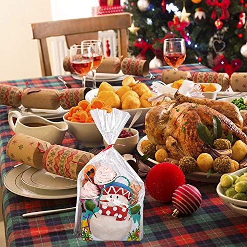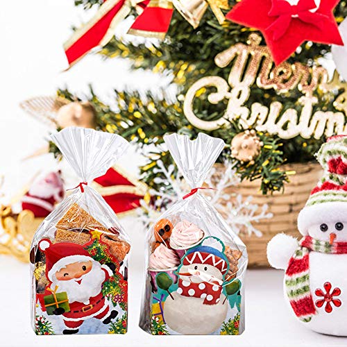 Borsa per caramelle di Natale,20 pezzi di sacchetti trasparenti natalizi con motivi di Babbo Natale e pupazzo di neve e 20 pezzi cravatte sacchetti di biscotti regalo caramelle sacchetti di Natale