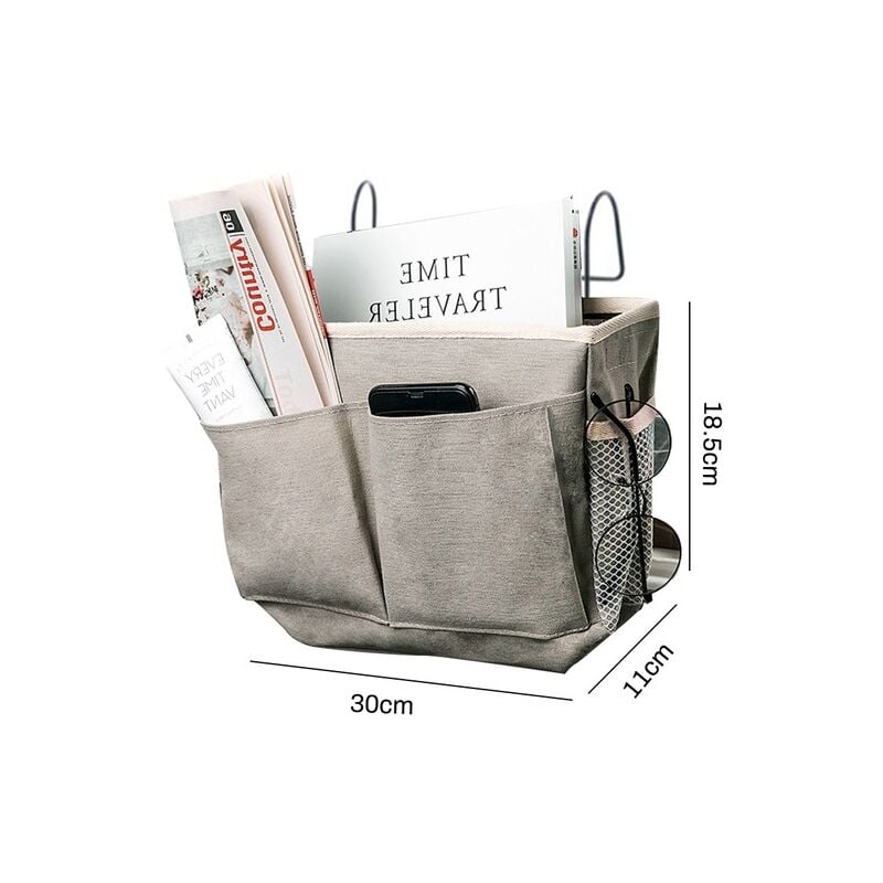 Borsa portaoggetti da appendere al comodino del dormitorio sul comodino borsa portaoggetti per letto per studenti di grande capacità cestino appeso per cellulare Caratteristiche: Materiale su tela, spesso e facile da usare, staffa in ferro battuto, facile da prendere Tasca centrale da 30*9.5CM, ampio spazio di archiviazione, compresse, grandi sacchetti di patatine, le riviste possono anche essere facilmente conservate Doppie tasche frontali, tasche laterali a rete, gli spazi multipli vengono conservati separatamente e i piccoli oggetti sono facili da prendere Design a doppio gancio sul lato, auricolari appesi e conservati, porta carte, chiavi, ecc. Rivestimento in PE all'interno, lo sporco può essere facilmente pulito, pulito e ordinato da usare Applicabile in più scenari, disponibile sul comodino del dormitorio, sul retro della sedia da ufficio accanto al letto in casa, sulla porta della cucina e del mobiletto del bagno, ecc. Nome del prodotto: borsa da appendere al comodino