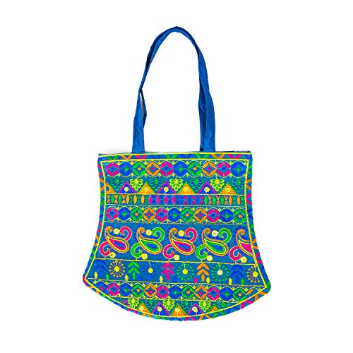 BORSA IN TELA DI COTONE - 8 COLORI - LUNGA TRACOLLA - STILE ETNICO - STILE HIPPIE - CHIUSURA A LAMPO - OTTIMA QUALITA' - ADATTA PER USO QUOTIDIANO, VIAGGIO E SPIAGGIA - BLU 33 x 34 x 80 cm