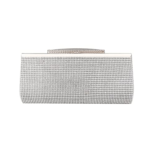 Borsa da sera debuttante Pochette da donna strass argento con tracolla a catena Clutch