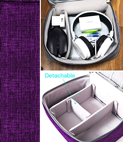 Borsa per dispositivi elettronici, scomparti per hard disk, accessori digitali, organizer per cavi, spine, disco rigido esterno, cuffie e mouse viola Lilla