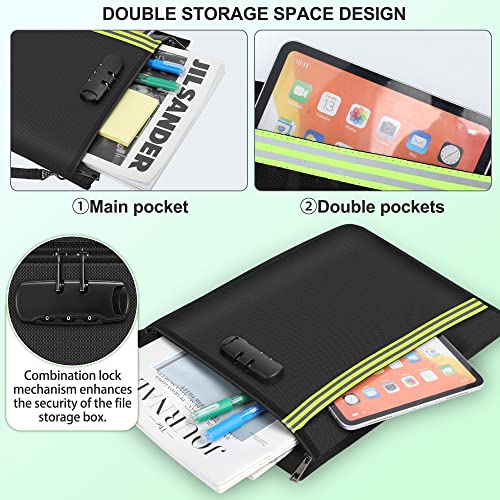 Design unico: il design a doppio spazio di archiviazione gestisce l'archiviazione di diversi articoli, può archiviare comodamente documenti importanti come contratti, passaporti, certificati, lettere e contanti. Design con striscia riflettente notturna, trova rapidamente il tuo portafoglio ignifugo anche di notte.