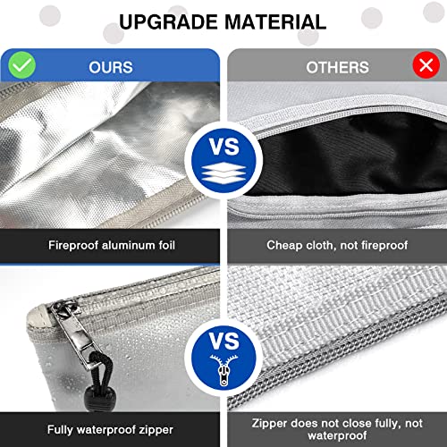 Borsa per documenti ignifuga, impermeabile, per documenti A4, documenti di valore, banconote, denaro, in fibra di silicone di alta qualità, 34 x 23 cm e 27,5 x 17 cm